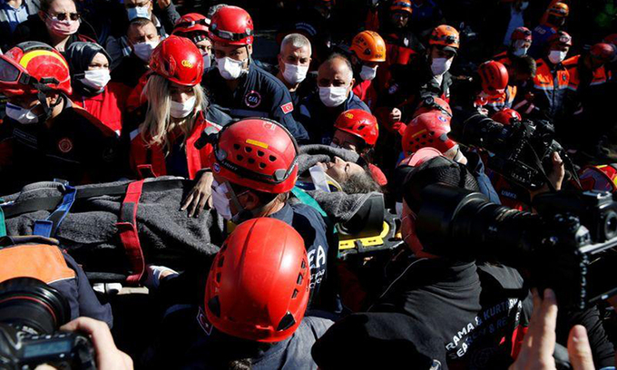 Thị trưởng thành phố cảng Izmi ước tính còn khoảng 180 người bị mắc kẹt dưới đống đổ nát sau vụ động đất mạnh khoảng 7 độ ngoài khơi Thổ Nhĩ Kỳ và Hy Lạp hôm 30/10, gây ra sóng lớn đánh vào các hòn đảo và khu vực bờ biển.