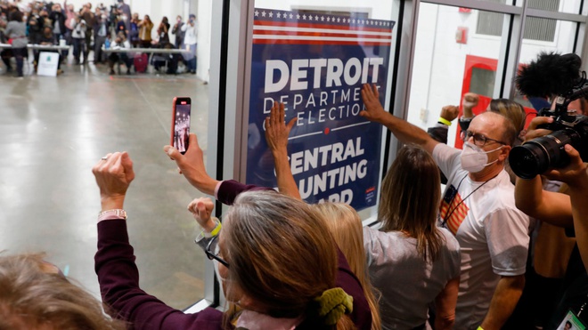 Người ủng hộ Tổng thống trump gây sức ép tại điểm kiểm phiếu ở Detroit ngày 4/11. Ảnh: Reuters.