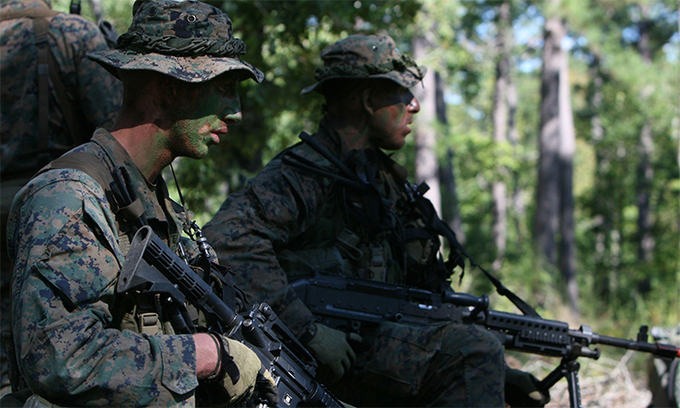 Binh sĩ thủy quân lục chiến Mỹ tham gia diễn tập tại căn cứ Lejeune, Bắc Carolina, tháng 12/2011. Ảnh: USMC.