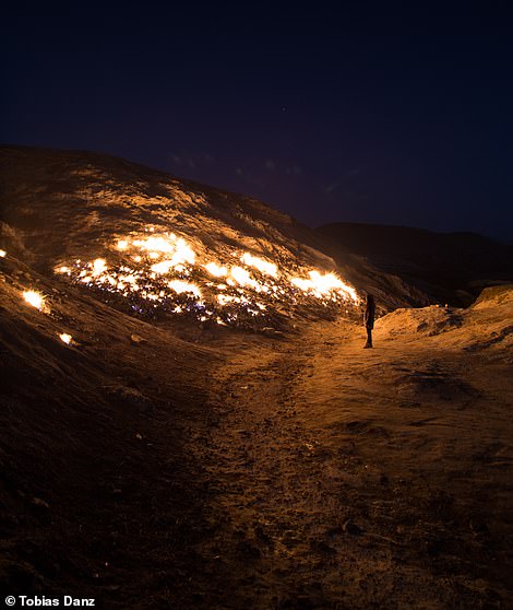 Sở dĩ sườn núi này bốc cháy là do sự bắt lửa của khí pyrophoric thoát ra, tiếp xúc với không khí. Ngọn lửa tại đây cháy cả ngày lẫn đêm, nhưng vào ban đêm nó trở nên nổi bật hơn bao giờ hết. Thậm chí, người dân trong vùng sử dụng ngọn lửa này để làm các món thịt nướng.