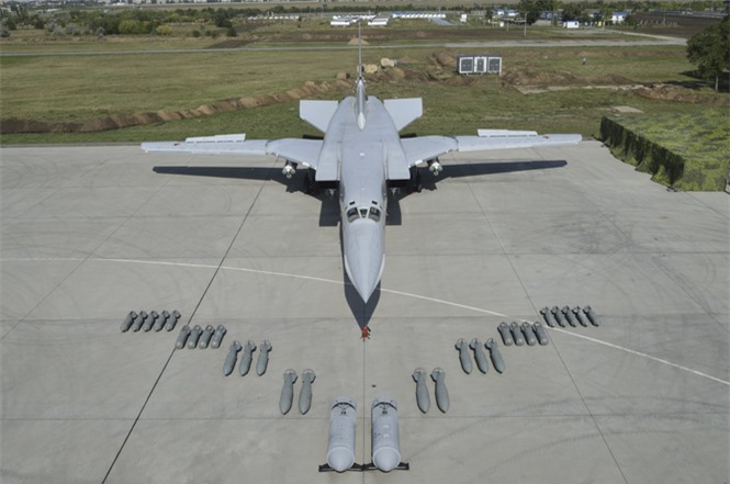Tu-22M3 tầm trung cũng có thể được trang bị các vũ khí hủy diệt cực lớn: một cặp bom đa năng FAB-3000 (mỗi quả nặng 6.614 pound) hoặc 6 quả bom 1,102 pound hoặc 10-12 quả bom 551 pound. Các quả bom bổ sung được gắn ở giá treo bên ngoài của Backfire.