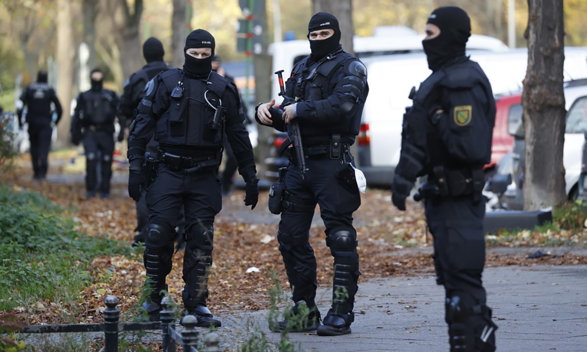 Cảnh sát chống bạo động tại vùng ngoại ô của Berlin, Đức, ngày 17/11. Ảnh: AFP.