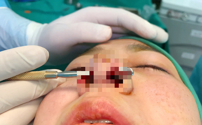 Cơ sở spa đã nhét hẳn cả khối sụn nhân tạo to cứng vào mũi cùng với nhiều mảnh sụn tai rải rác, với nhiều mũi chỉ khâu chằng chịt”.