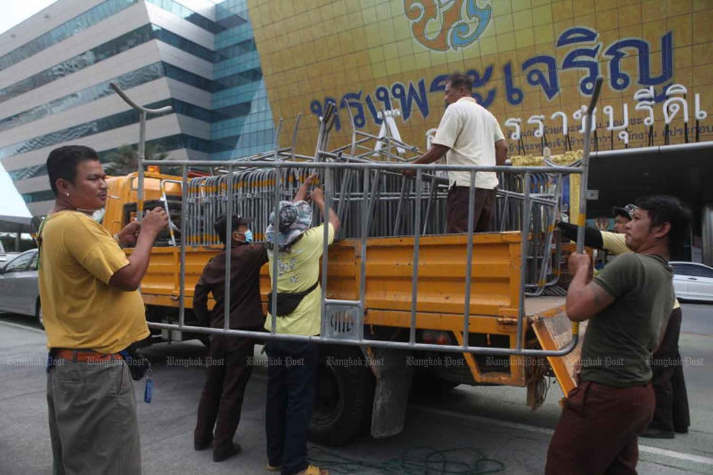 Lực lượng an ninh dựng hàng rào bên ngoài Tòa án Hiến pháp để đối phó người biểu tình. Ảnh: Bangkok Post.