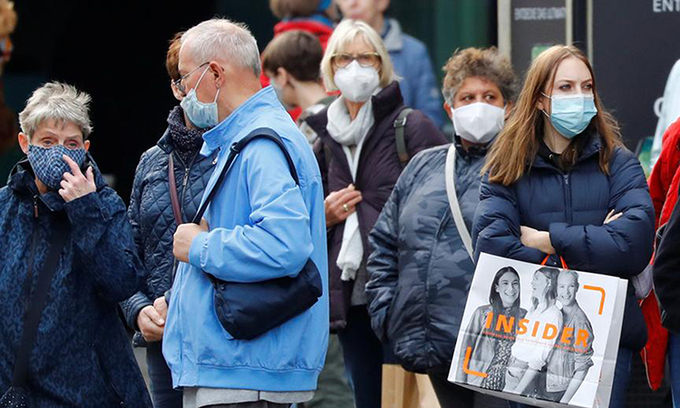 Người dân Đức đeo khẩu trang trên phố ở Berlin hồi tháng 10. Ảnh: Reuters.