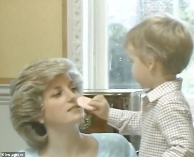 Theo đó, đoạn phim được quay lại trong một buổi chụp hình gia đình vào năm 1985. Video cho thấy, cậu bé William với mái tóc vàng rực, mặc chiếc áo caro xinh xắn, đang âu yếm nhẹ nhàng thoa phấn lên mặt mẹ mình như một chuyên gia trang điểm nhí "chuyên nghiệp". Khi được con trai cẩn thận chăm sóc vẻ bề ngoài, có thể thấy Công nương xứ Wales, trong một chiếc váy chấm bi màu xanh da trời với những lọn tóc vàng xinh đẹp hoàn hảo, nhẹ nâng mũi lên để "hợp tác" cùng con, miệng nở nụ cười cưng nựng con trai đầy ngọt ngào.