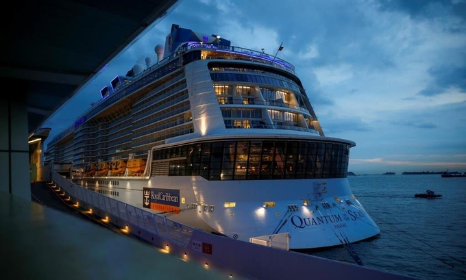 Du thuyền Quantum of the Seas của Royal Caribbean cập bến Trung tâm Du thuyền Vịnh Marina ngày 9/12. Ảnh: Reuters.
