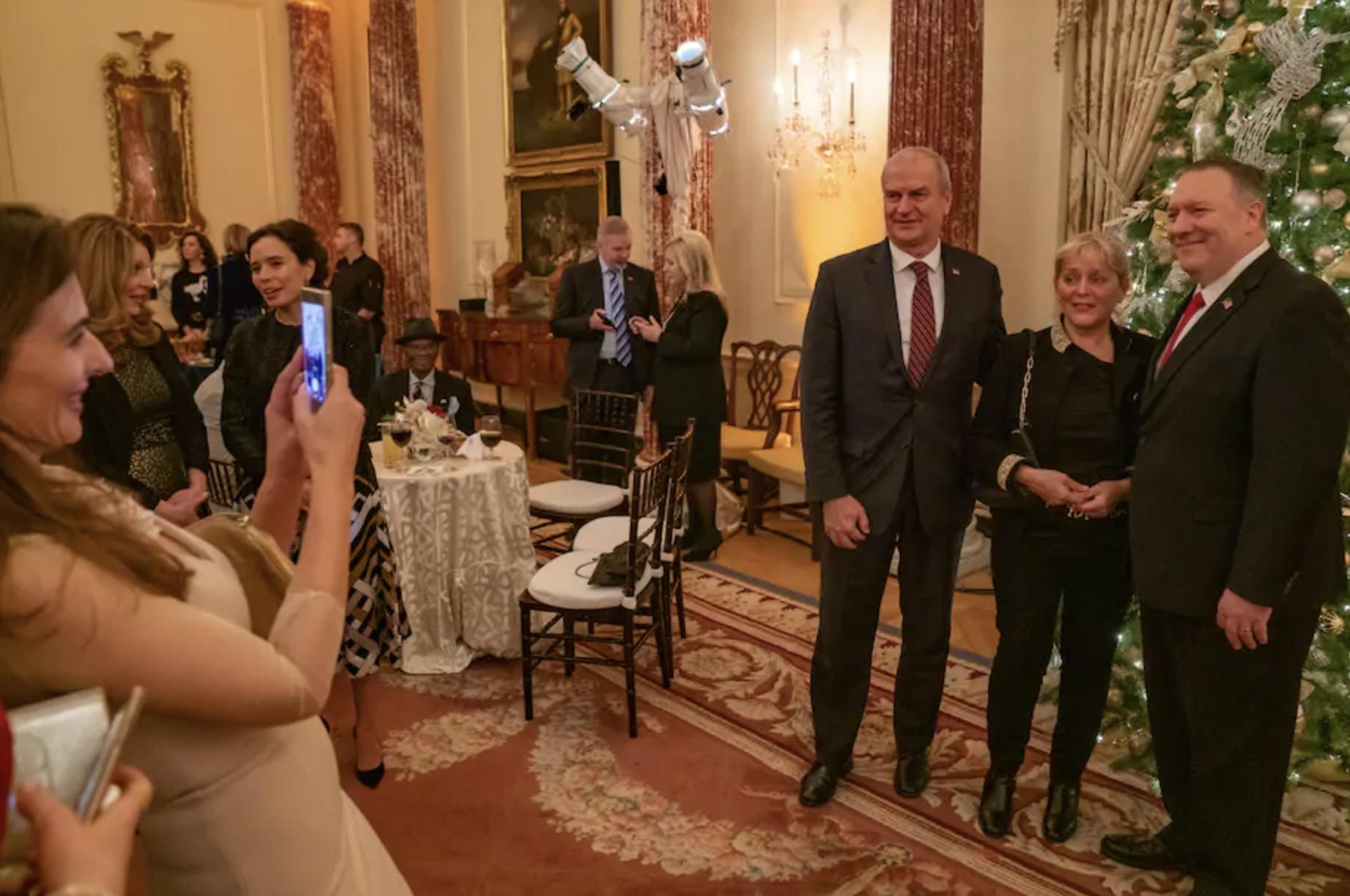 Tại Blair House, khu nhà tiếp khách của tổng thống, được Ngoại Trưởng Mike Pompeo mở tiệc đãi khoảng 200 khách vào hôm tối Thứ Ba, 8 Tháng Mười Hai, bất chấp tình trạng có người vừa bị lây nhiễm vài ngày trước tại nơi đây.
