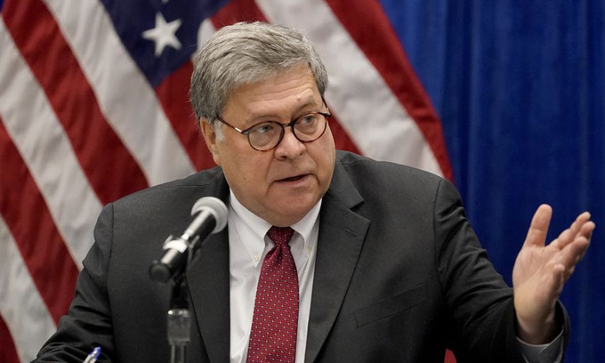 Bộ trưởng Barr trong một sự kiện ở St. Louis hồi tháng 10. Ảnh: AP.