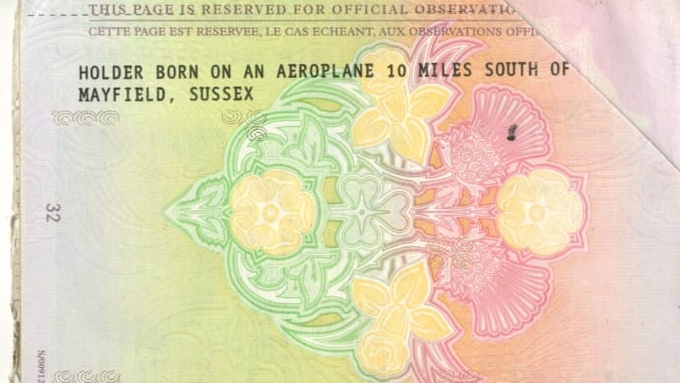 "Người sở hữu hộ chiếu được sinh ra trên một chiếc máy bay cách Mayfield, Sussex 10 dặm về phía nam", hộ chiếu của Shona Owen ghi. Ảnh: Shona Owen