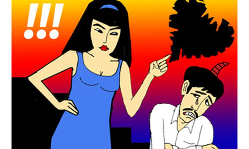 Thấy chồng đang sửa soạn chuẩn bị ra ngoài, cô vợ liền gằn giọng: “Anh yêu! Hôm nay anh ở nhà trông con nhé”