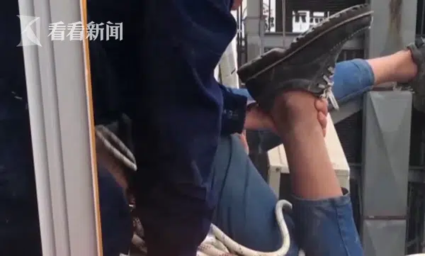 Theo truyền thông Trung Quốc, sự việc xảy ra vào trưa ngày 14/12. Khi cảnh sát đến nơi, người đàn ông vẫn còn treo lơ lửng ở ban công tầng 6. Lúc đó, nhiệt độ ngoài trời chỉ khoảng 2 độ C. Người bị nạn cởi trần thân trên, 2 chân đạp nhẹ lên bệ cửa sổ tầng 5, trong khi đó 1 cánh tay đã mắc kẹt vào khung sắt giá đỡ máy điều hòa ở tầng 6. Khi có 1 cơn gió thổi ngang qua, anh ta lại rùng mình 1 lần.