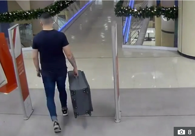 Hắn đi xuống với chiếc vali đựng xác bạn gái Millane. Ảnh: The Sun