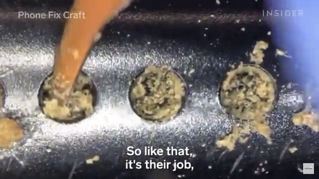 Chưa hết, phần loa của chiếc điện thoại cũng bị bám đầy bởi chất bẩn khó coi. Trong video gốc Phone Fix Craft chia sẻ với Insider, kể cả phần nội tạng - vốn là phần kín nhất của chiếc điện thoại - cũng không thoát khỏi số phận của việc trông như một khu rừng rậm mini.