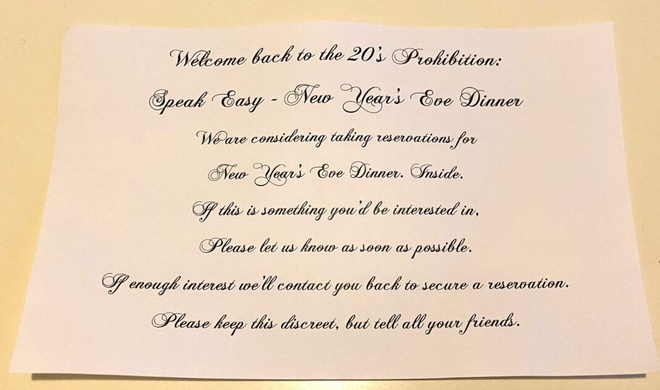 Nhà hàng La Scala ở khu đô thị cao cấp Beverly Hills đã phát thiệp mời nhằm quảng bá bữa tiệc dự kiến diễn ra vào đêm 31/12 với thông điệp: "Hãy giữ kín điều này, nhưng cứ kể cho toàn bộ bạn bè của bạn nhé".