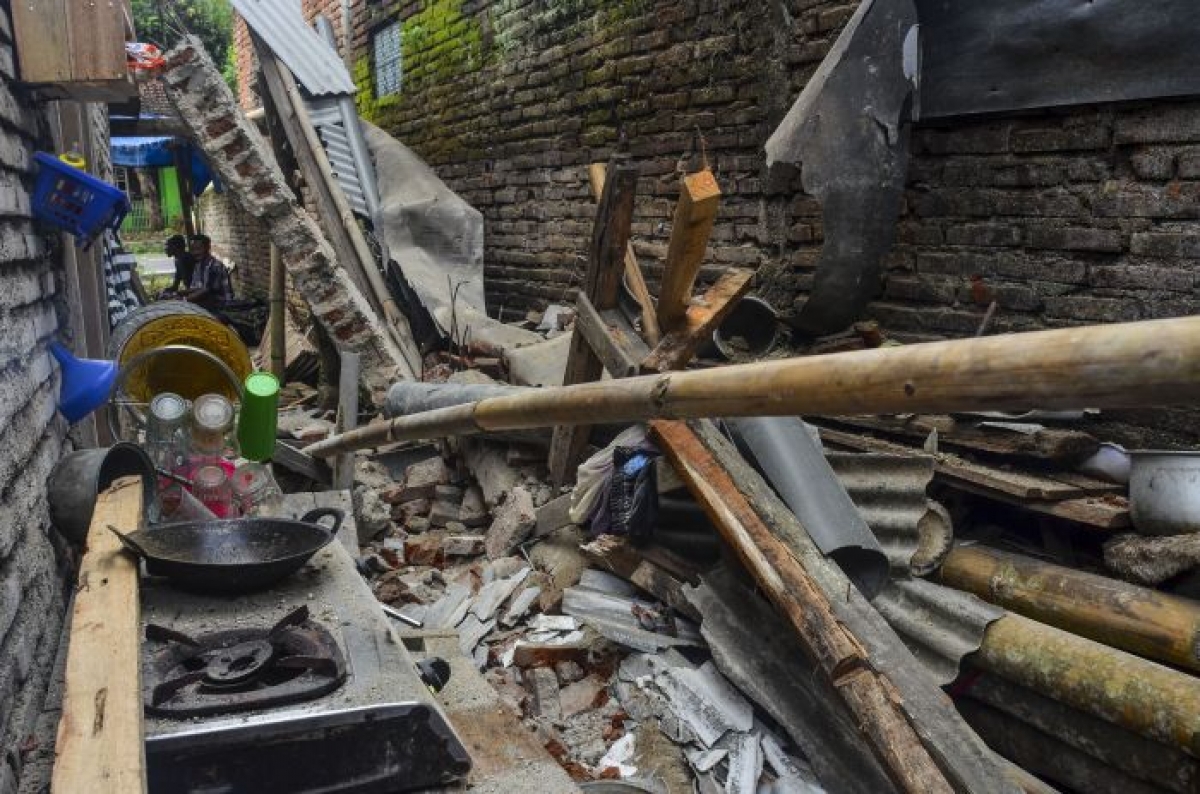 Một căn nhà bị hư hại sau trận động đất ở Tây Java tháng 10/2020. Ảnh: Media Indonesia