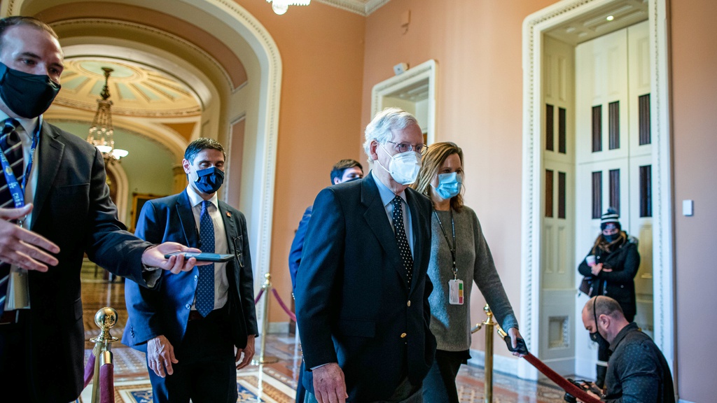 Thượng nghị sĩ Mitch McConnell chặn việc bỏ phiếu tăng tiền hỗ trợ lên 2.000 USD. Ảnh: New York Times.
