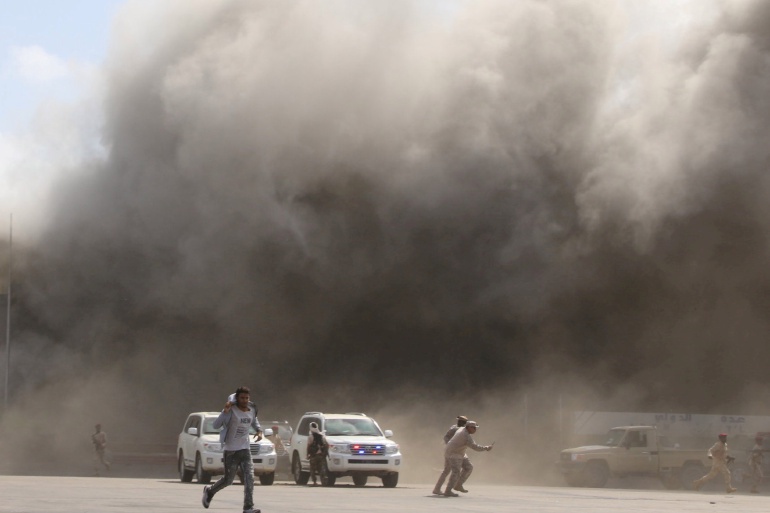 Sân bay bị tấn công ngay lúc thủ tướng Yemen đáp xuống. khi máy bay chở Thủ tướng Maeen Abdulmalik và toàn bộ nội các vừa hạ cánh thì sân bay thủ đô Aden của Yemen bị tấn công. Thông tin ban đầu cho biết ít nhất 13 người thiệt mạng.