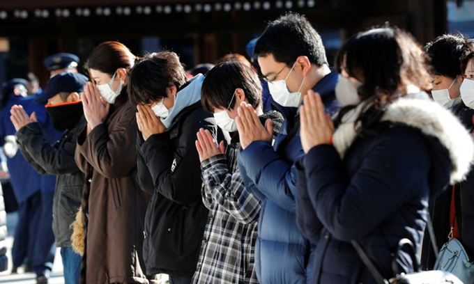 Thông thường vào dịp đầu năm mới, người Nhật Bản thường dành thời gian cho gia đình và đi tới các ngôi đền để cầu may mắn cho cả năm. Tuy nhiên năm nay, ngôi đền Meiji Jingu ở trung tâm thủ đô Tokyo trở nên vắng vẻ hơn bình thường. Những du khách tới đền đều đeo khẩu trang và cố gắng giữ khoảng cách an toàn với mọi người xung quanh để hạn chế nguy cơ lây nhiễm nCoV.