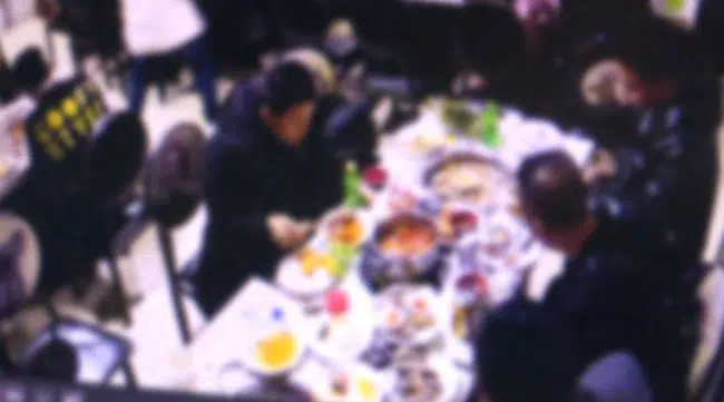 Sau đó, 16 vị khách này chia thành 2 bàn để dùng bữa. Trong đoạn video trích từ camera giám sát tại nhà hàng ghi lại, không khí của bữa ăn hôm đó dường như rất vui vẻ và các vị khách cũng nói chuyện thoải mái. Nhưng sau khi kết thúc bữa ăn, một điều kỳ lạ đã xảy ra.