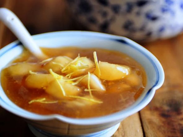 - Cho đường mật vào nồi, thêm một ít gừng thái sợi và đun nhỏ lửa. Đến khi đường tan hoàn toàn thì cho sắn vào đun cùng. Nấu nhỏ lửa để sắn ngấm đường.