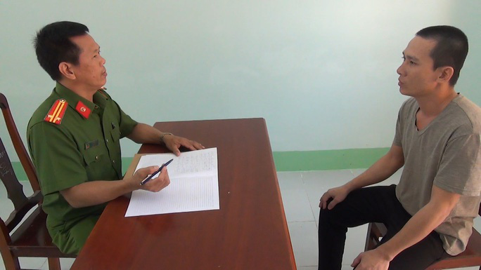 Điều tra viên lấy lời khai bị can Nguyễn Cẩm Long.