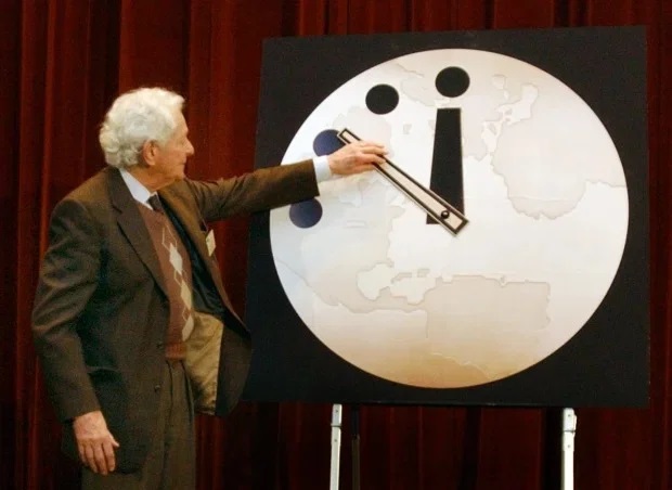 Khi chiếc kim phút trên Đồng hồ Tận thế càng gần nửa đêm thì càng nguy hiểm. Ảnh: AP