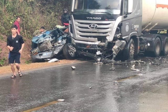 Cú va chạm cực mạnh giữa xe bồn với xe biển xanh 7 chỗ trên quốc lộ 6 (đoạn qua tỉnh Sơn La) đã khiến 1 người tử vong, 6 người khác bị thương.