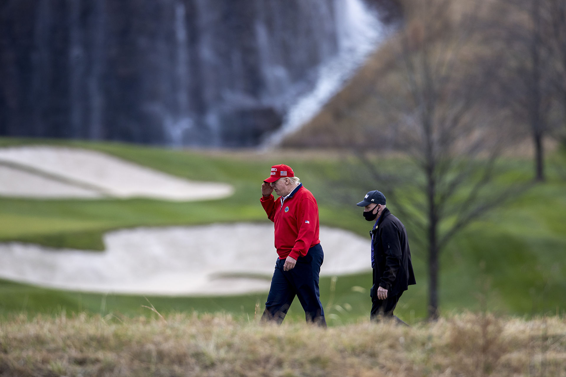 Cựu Tổng Thống Trump tại sân golf Trump National Golf Club khoảng ba tuần sau ngày bầu cử 3 Tháng Mười Một, 2020. (Hình: Tasos Katopodis/Getty Images)