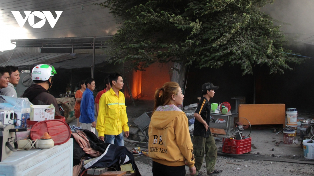 Tại hiện trường, cột khói bốc cao, đứng xa 10km vẫn nhìn thấy. Hàng chục hộ dân xung quanh và công nhân các dãy trọ đang nỗ lực di dời những tài sản có giá trị ra xa đám cháy./.