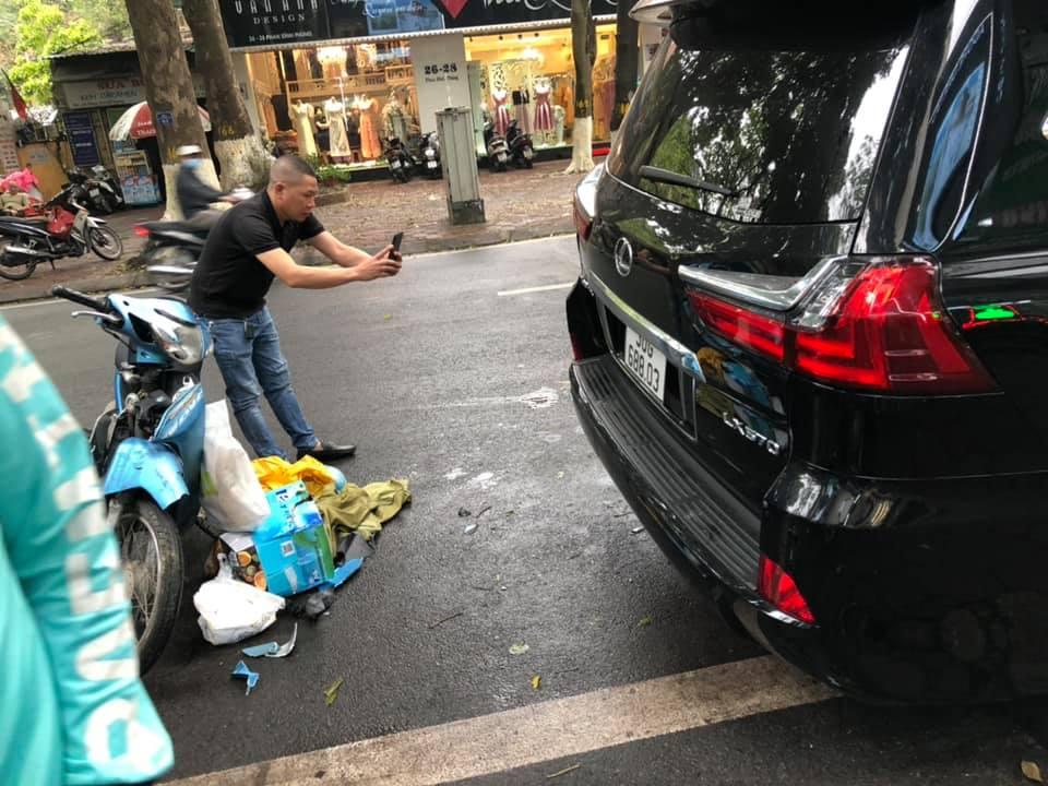 Nam thanh niên đang lưu thông trên đường. Do mải tránh 1 chiếc xe khác đi cùng chiều nên tài xế giao hàng đã tông vào đuôi của 'chuyên cơ mặt đất' Lexus LX570. Vụ va chạm có khả năng tài xế mất nửa năm lương.