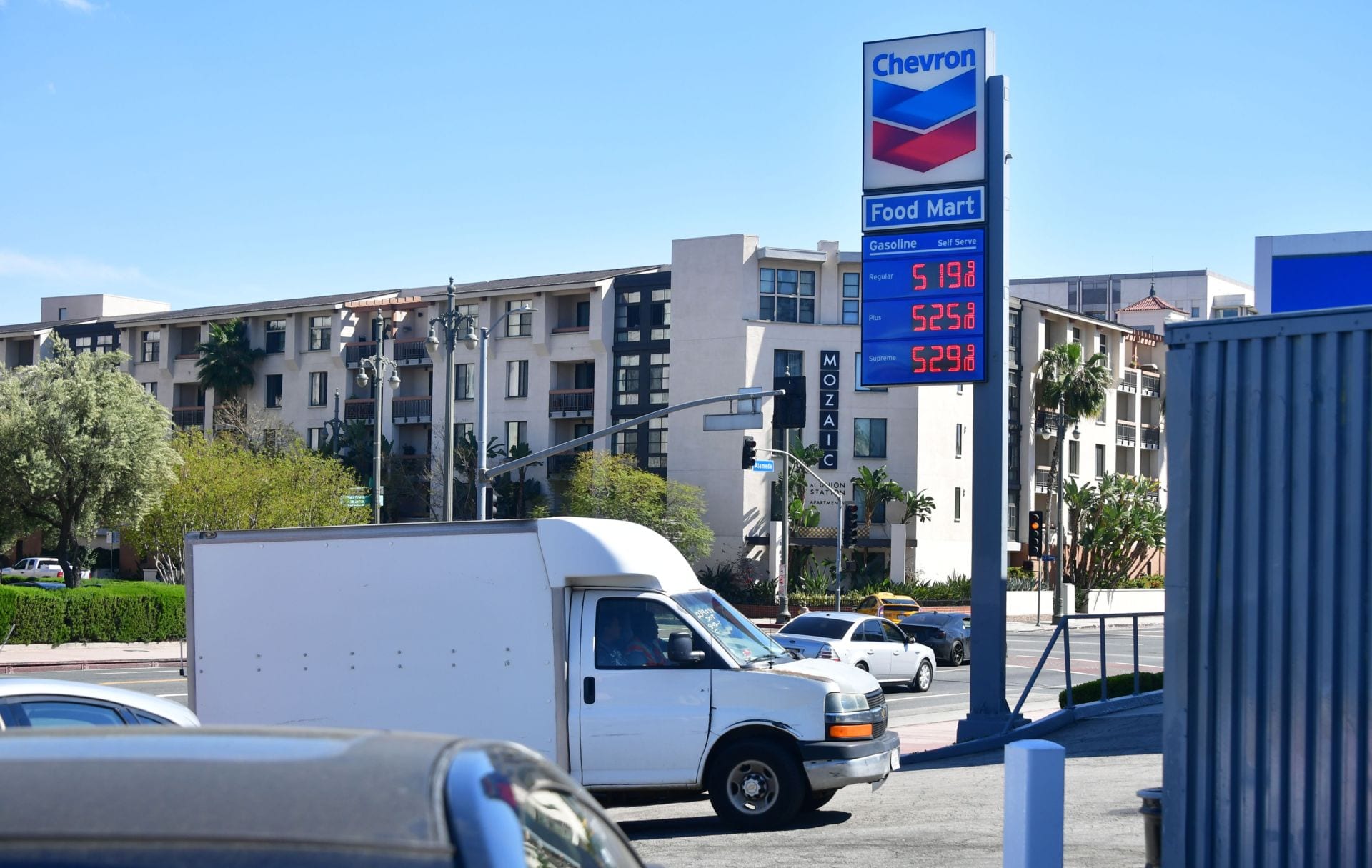 Giá xăng ở Nam California ngày càng tăng và đang cao nhất Hoa Kỳ, thậm chí có những chỗ bán xăng cao hơn $5/gallon. Trong hình là một cây xăng Chevron ở thành phố Los Angeles, có giá xăng 91 đến $5.29/gallon.