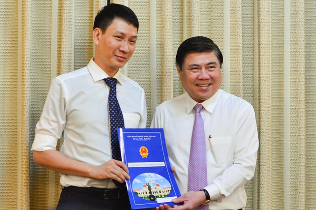 Chủ tịch UBND TPHCM Nguyễn Thành Phong trao quyết định bổ nhiệm ông Trần Văn Bảy giữ chức Phó Giám đốc Sở Tài nguyên - Môi trường TP.