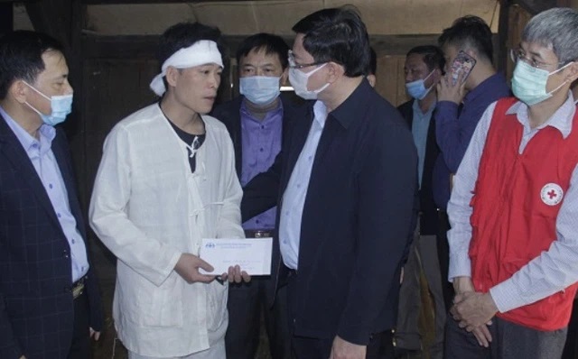 Ông Mai Xuân Liêm - Phó Chủ tịch UBND tỉnh Thanh Hóa thăm gia đình nạn nhân Lê Minh Lá (bản Giàng Vìn, xã Trí Nang, huyện Lang Chánh, tỉnh Thanh Hoá).
