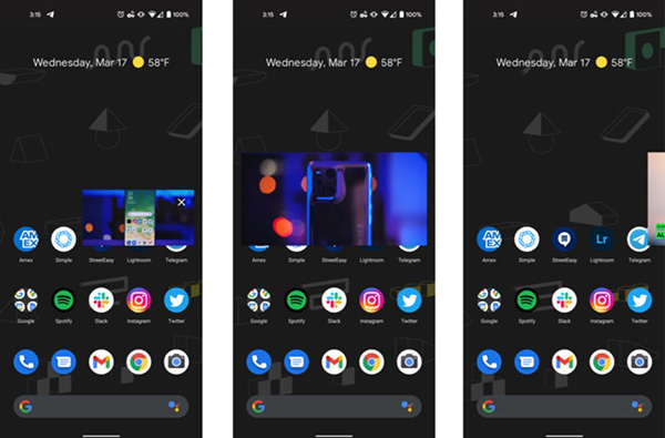 Trong phiên bản Android 12 Developer Preview 2, các cửa sổ PIP linh hoạt hơn nhiều. Quá trình chuyển đổi từ ứng dụng video như YouTube sang chế độ hình trong ảnh khi vuốt lên màn hình chính giờ đây mượt mà hơn một chút và các cửa sổ PIP có thể được mở rộng để lấp đầy toàn bộ chiều rộng của màn hình bằng cách kéo từ một góc của cửa sổ hoặc chụm để thu phóng.