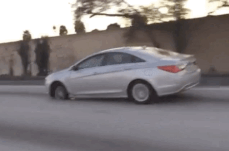 Old  Default Hyundai Sonata mất một lốp vẫn chạy băng băng trên đường, tài xế như không hay biết