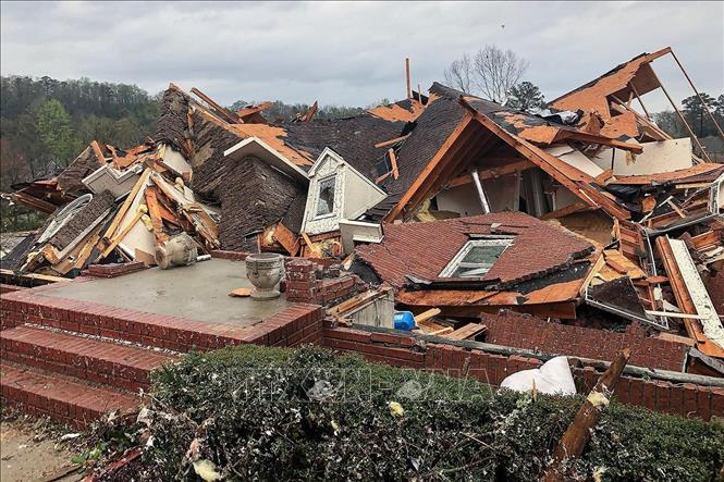 Nhà cửa bị phá hủy sau trận lốc xoáy tại bang Alabama, miền Bắc nước Mỹ chiều 25/3/2021. Ảnh: SHUTTERSTOCK/TTXVN