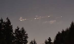 Hôm 4/3, SpaceX phóng cụm 60 vệ tinh internet Starlink lên quỹ đạo bằng tên lửa Falcon 9 hai tầng. Các chuyên gia cho rằng tầng trên của tên lửa thắp sáng bầu trời đêm với nhiều chấm nhỏ sáng rực bay qua không trung. Cư dân địa phương chứng kiến sự việc vào sau nửa đêm, tương đương 12 giờ trưa ngày 26/3 theo giờ Hà Nội.