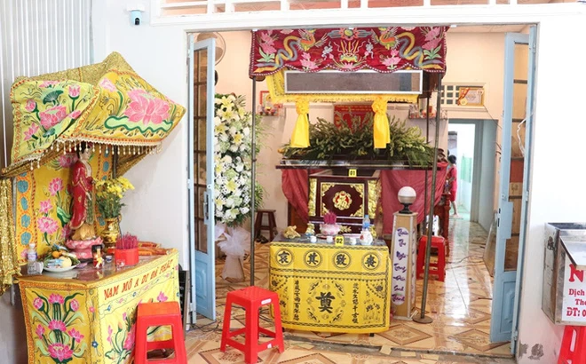 "Di ảnh trong tang lễ giả của bà Tuyến. Ảnh: báo Người lao động