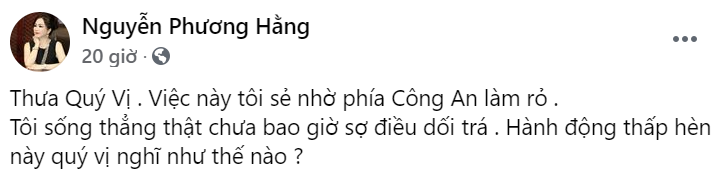 Nhân vật chính Nguyễn Phương Hằng cũng chia sẻ trên trang cá nhân đoạn ghi âm lan truyền chóng mặt này. Trong đoạn clip, giọng nữ khóc lóc, nói lời yêu đương với ông Yên: "Ai nhiều tiền hơn em, tại sao em phải khóc lóc mỗi ngày em khổ đây, tại em làm nát trái tim em, nát trái tim anh, mỗi lần em làm nghĩ tới anh là người em cuồn cuộn cuồn cuộn như là ai xúi giục em, ai làm cái điều gì mà em phải điên loạn vì anh".