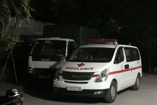 Xe cứu thương đưa thi thể nạn nhân đi khám nghiệm.