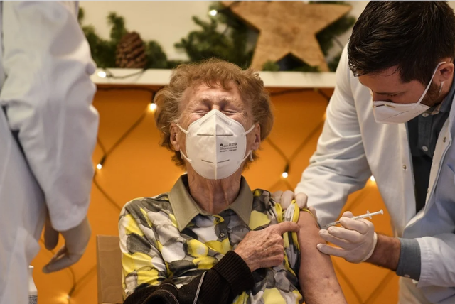 Người lớn tuổi được tiêm vắc xin Covid-19 tại viện dưỡng lão ở Đức (Ảnh: SCMP)
