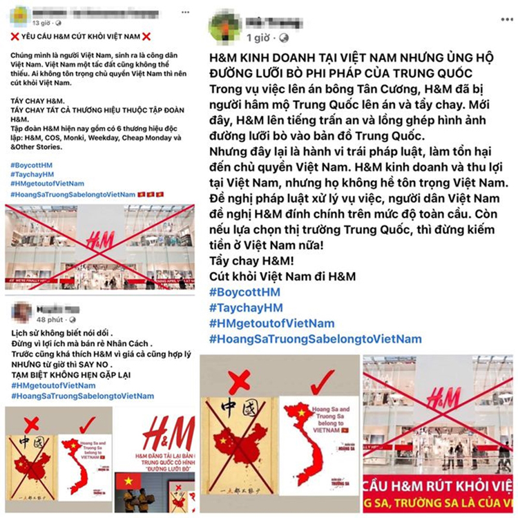 Hãng thời trang H&M đang vấp phải sự phản đối mạnh mẽ và bị người tiêu dùng ở Việt Nam kêu gọi tẩy chay, sau khi có thông tin cho là hãng này đăng hình bản đồ Trung Quốc có đường lưỡi bò phi pháp.