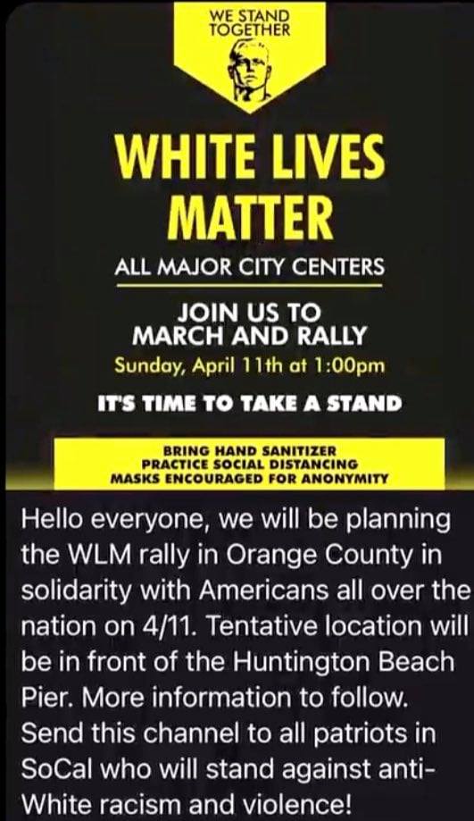 Thị trưởng Huntington Beach, Lyn Semeta cho biết trong một tuyên bố. “Chúng tôi không khoan nhượng đối với phân biệt chủng tộc ở Thành phố của chúng tôi và trong khi chúng tôi hoàn toàn ủng hộ Tu chính án thứ nhất, chúng tôi kiên quyết chống lại việc núp sau nó để kích động sự căm thù.”