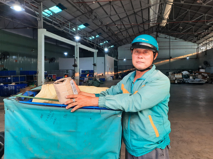 Ông Thái đang chuẩn bị hàng để đi giao chiều ngày 7/4. Ảnh: Diệp Phan.