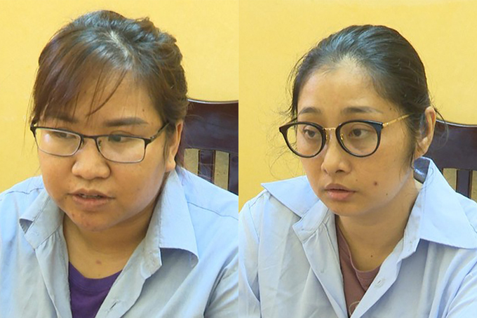 Thư và Thảo tại cơ quan điều tra. Ảnh: Hưng Yên.