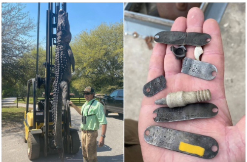 “Ông Ned McNeely đã mang về con cá sấu dài 3,7 m và nặng 201 kg vào sáng nay! Chúng tôi mổ bụng con vật, dù thông thường chúng tôi không làm việc này. Chúng tôi tìm thấy 5 chiếc thẻ đeo cổ chó, một áo chống đạn, 1 chiếc bugi, vô số mai rùa và một số móng vuốt linh miêu. Hai trong số các thẻ đeo cổ chó vẫn còn thông tin rõ ràng và một số điện thoại ghi trên đó vẫn hoạt động”, Cordray’s tiết lộ trong một bài đăng trên Facebook.
