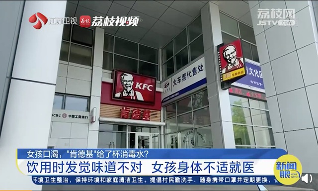 Theo Thời báo Hoàn cầu, ngày 29/3, một khách hàng tên Du đã tới cửa hàng KFC ở Tô Châu dùng bữa và gọi một cốc nước đá. Tuy nhiên, ngay khi nhấp ngụm đầu tiên, cô Du đã cảm thấy như mùi của thuốc khử trùng. Nghĩ rằng điều đó là không thể, cô uống tiếp ngụm thứ hai và lập tức cảm thấy nóng ran từ cổ họng xuống.
