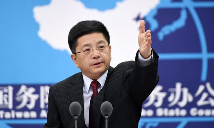 Mã Hiểu Quang, phát ngôn viên Văn phòng Các vấn đề Đài Loan, tại cuộc họp báo ở Bắc Kinh năm ngoái. Ảnh: Xinhua.