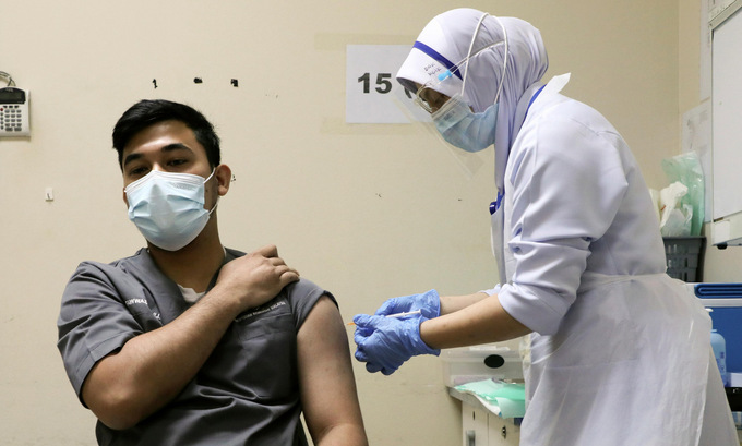Nhân viên y tế Malaysia tiêm vaccine Covid-19 hồi tháng 3. Ảnh: Reuters.